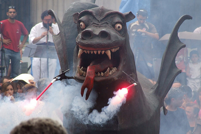 That night, we were very excited and more than a little anxious to check out Festa Major, Terrassa´s annual town festival. All that Lissa would inform us of was that we needed to be fully covered, that there would be fire, and that it would be great. Hmmm.... Well, that turned out to mean a frenzy of what was literally dragons spitting fire, firecrackers going off every which way, men dressed as devils holding gigantic sparklers, and of course, the hoards of well-covered people that we´re dancing around the dragon in circles, ducking their heads to avoid being majorly burnt by the sparks. As terrifying as that may be, it was infinitely more fun and we could just feel the tradition and the community of Terrassa. That night, we went out with Pau and his friends, the son of Lissa and Alex´s neighbor to see the way that the young people of Terrassa celebrate Festa Major. And celebrate they did! We enjoyed the banter across the language barrier, getting to know the difference of Spaniards from Catalonians (e.g. gross guys that hit on us are Spanish; cool, funny guys are Catalon), and the masses of people partying in the park.